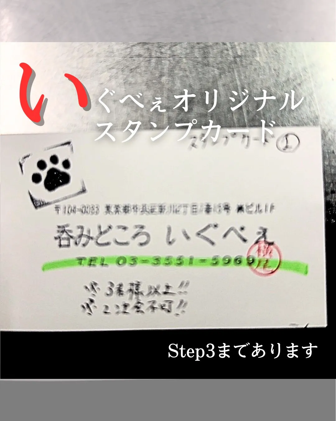 . .📣【いぐべぇのオリジナルスタンプカード✨】いつもご来店ありがとうございます🐾 いぐべぇでは、常連さんにも初めてさんにも嬉しい 《スタンプカード》をご用意しています!Step3まで集めると…ちょっぴり…
